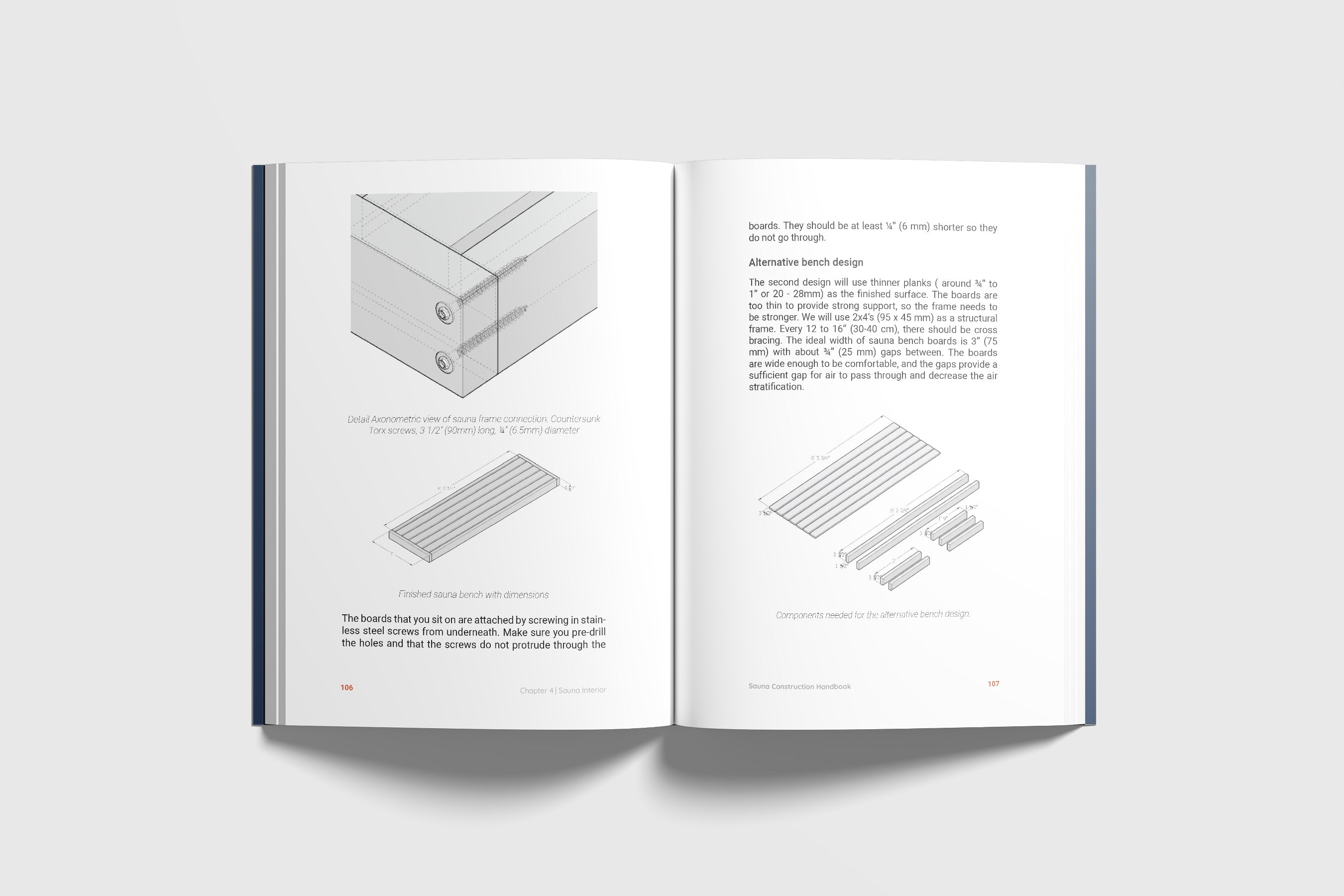 Building Sauna Benches: Choose from different design options for building your sauna benches.