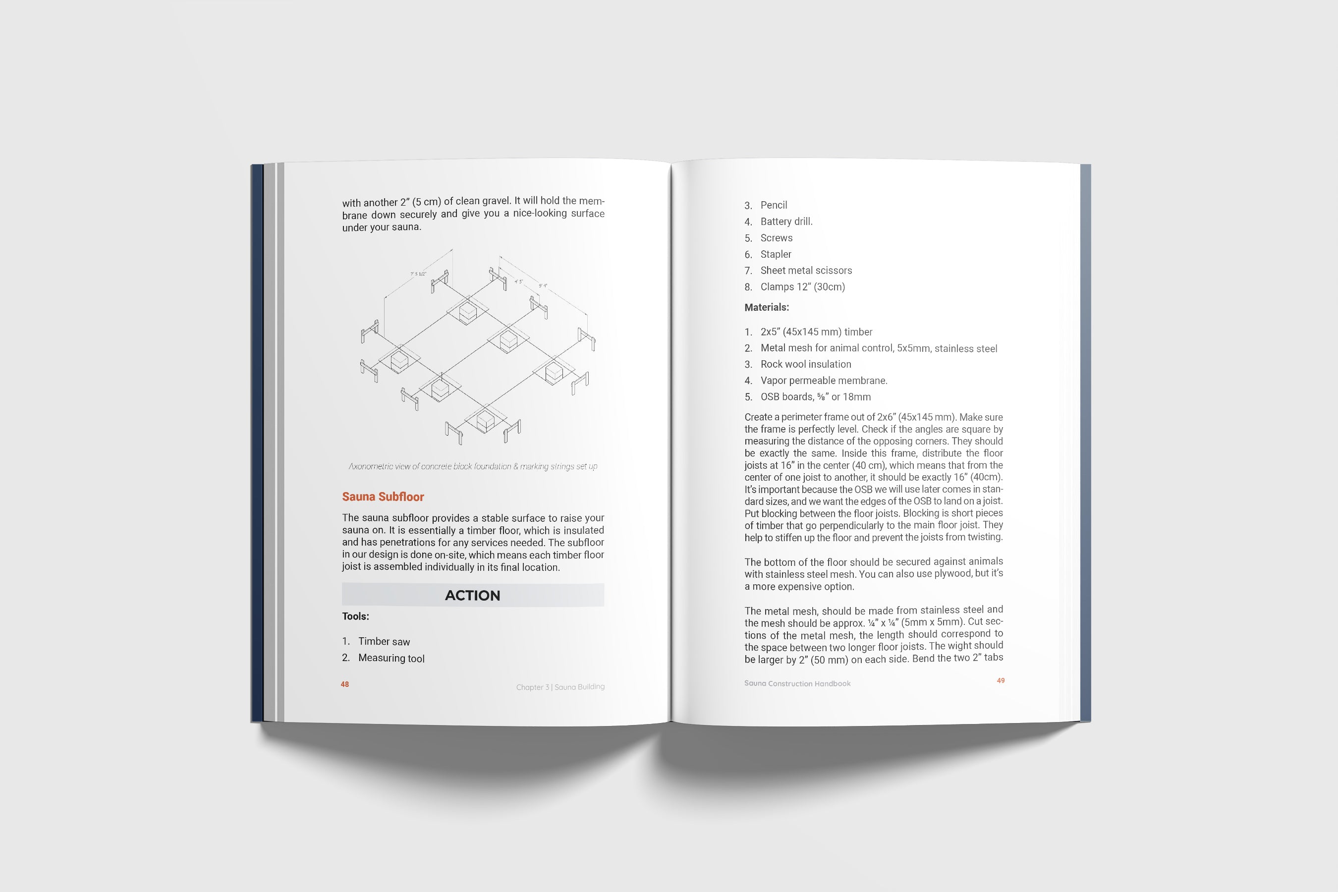 Constructing the Sauna Subfloor: Learn how to build a robust, insulated subfloor for your sauna, ensuring a stable base to build on.