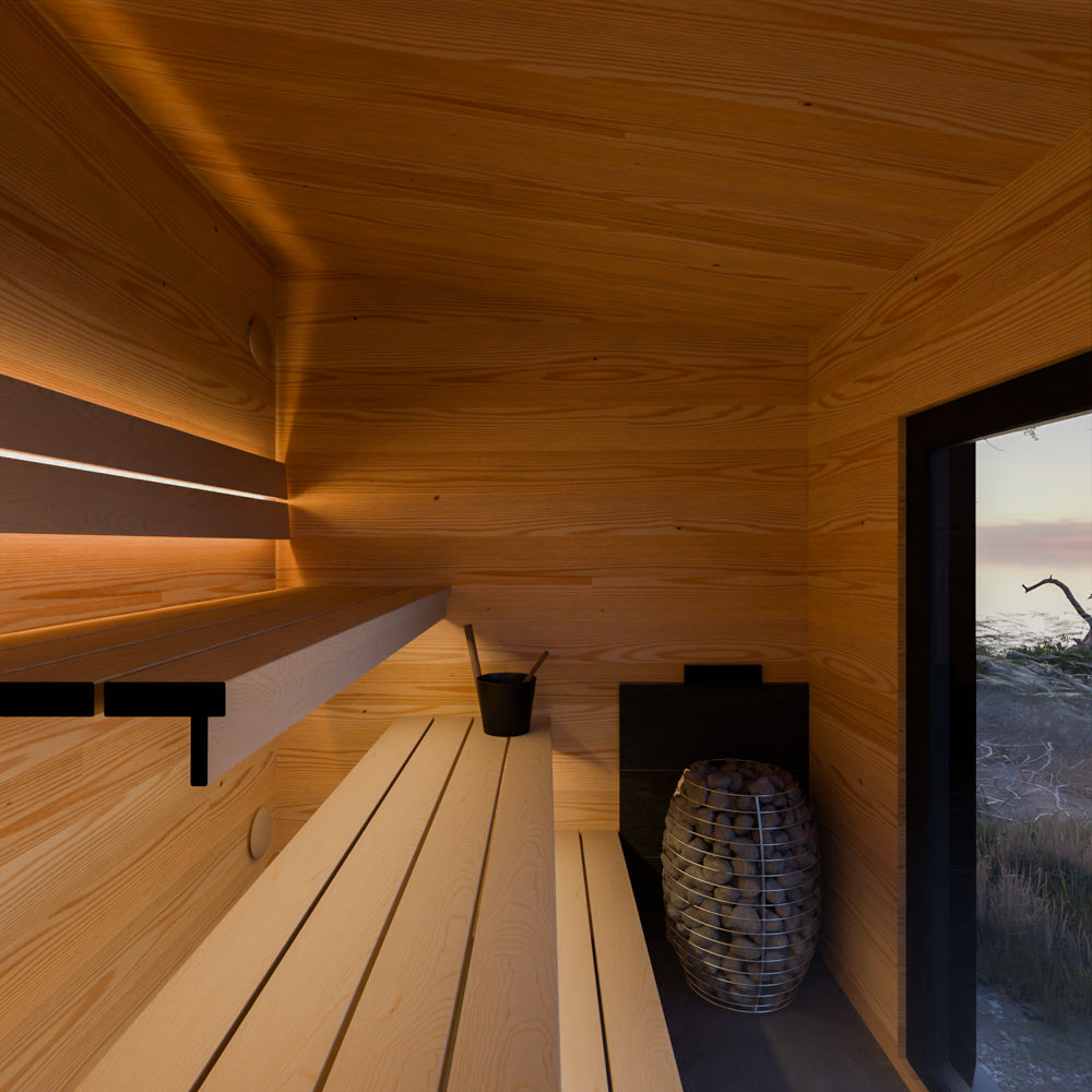 The ventilation void in our designs allows the wood to breathe. In designs with an electric stove, mechanical ventilation is used, thanks to which there is a smaller difference in temperature up and down in the hot part and better air circulation. Breathe freely during a sauna session.