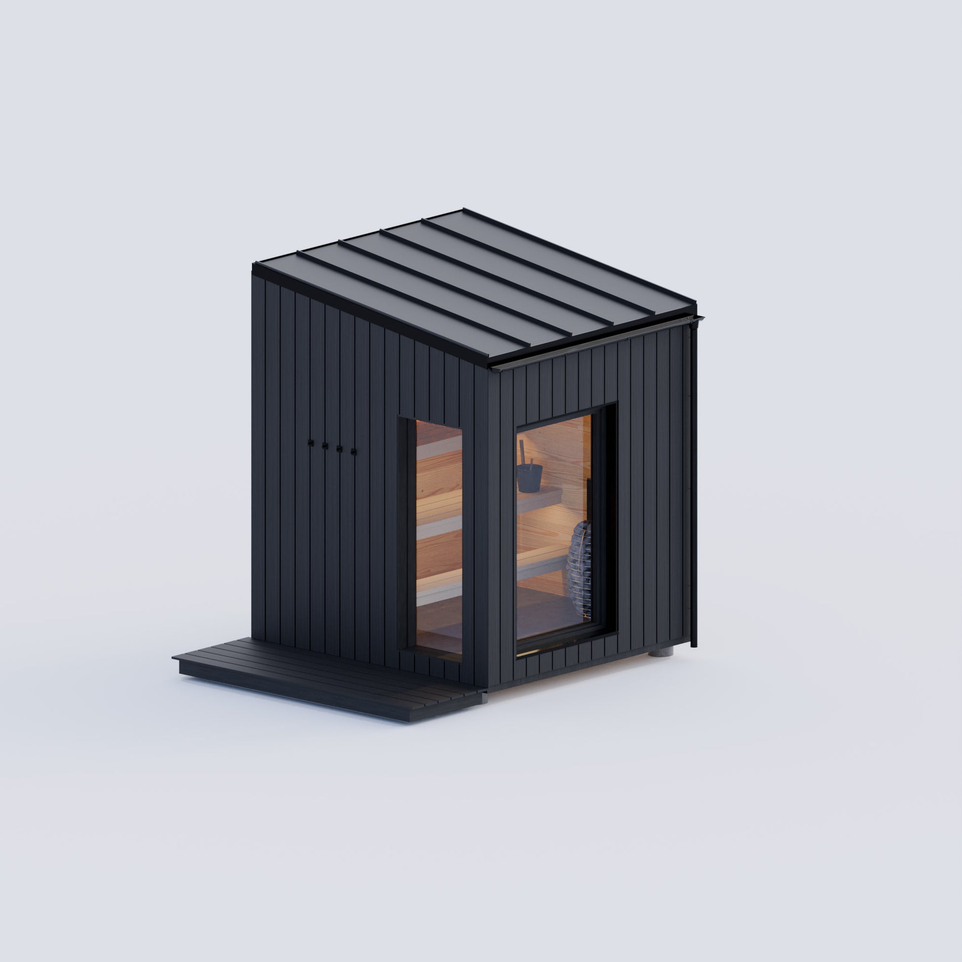 A minimalist sauna providing an authentic Finnish Sauna experience. This is one of our smallest models, so it is perfect if you have limited space. You can use a wood or an electric stove. The plans will cover the two options. Choose, depending on your preferences, whether you want a sauna with 2 or 3 levels of benches (select a variant when purchasing the project).