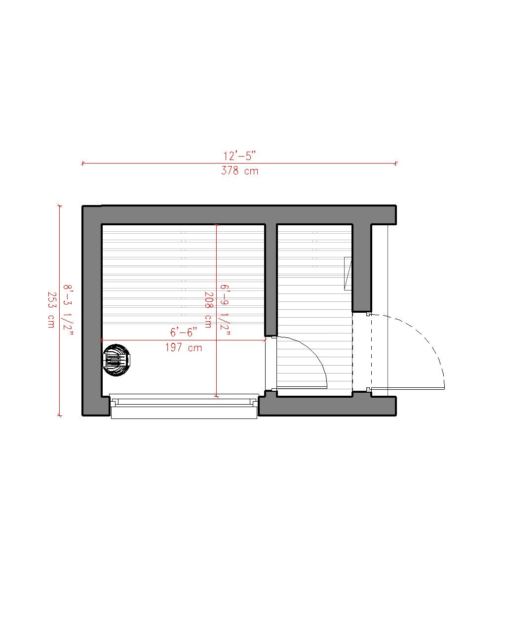 Hot Room Dimensions: 7' x 6.5" / 205 cm x 205 cm