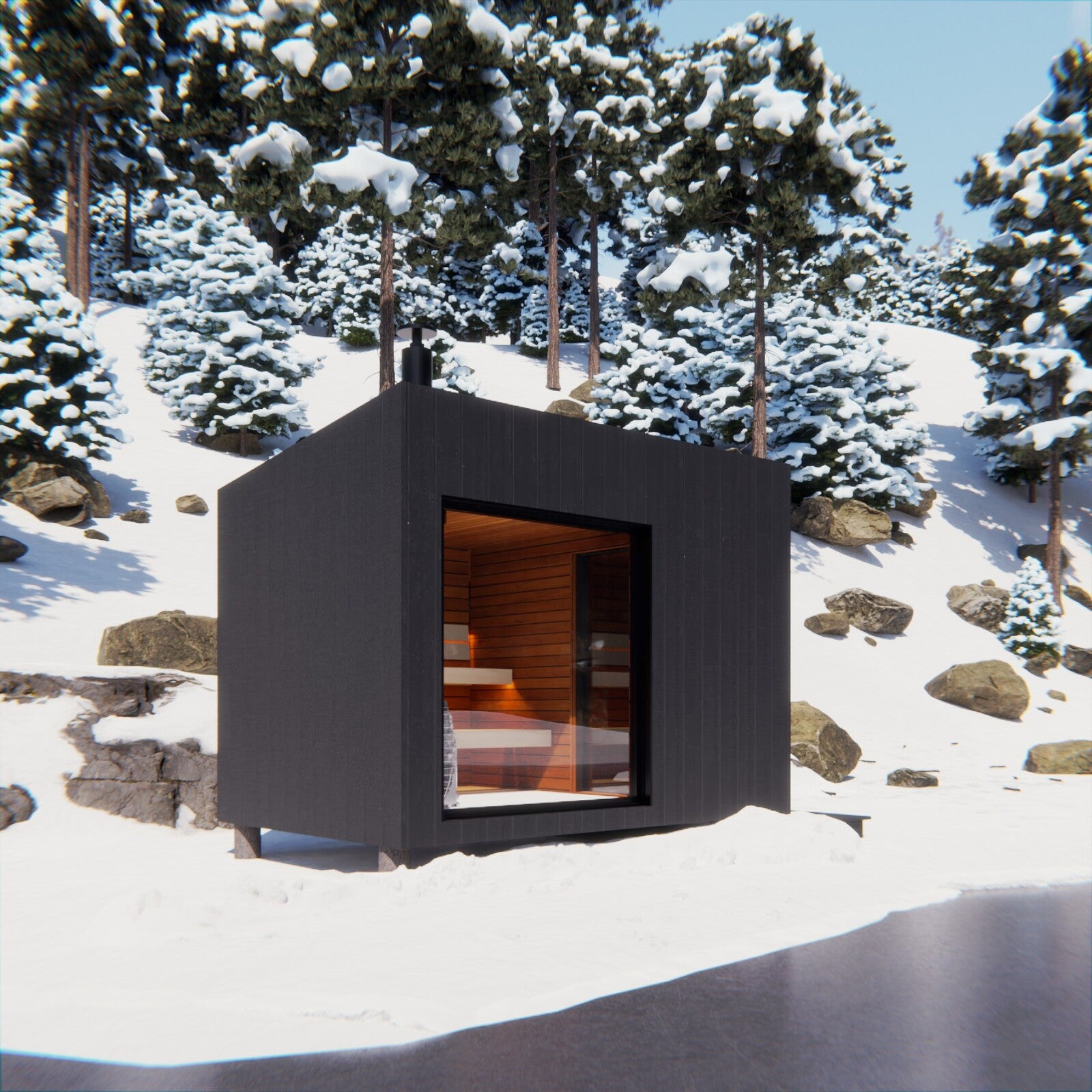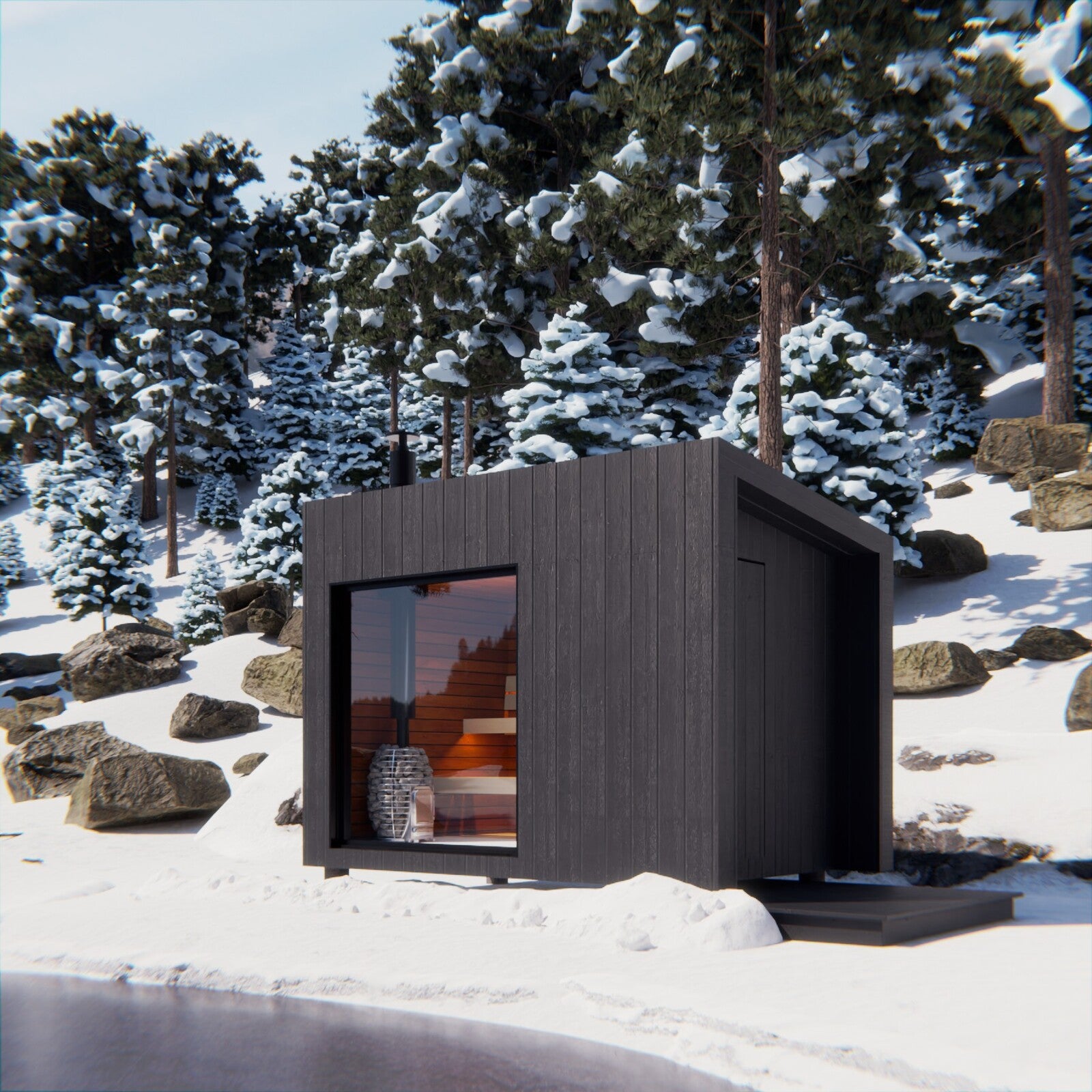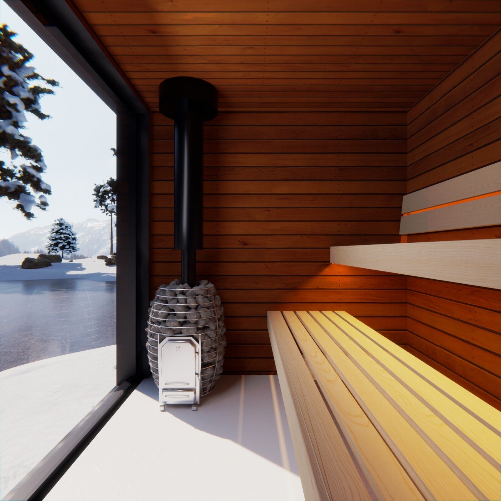 Enjoy soothing views through a large window, two comfortable bench levels, and choose whether you want to build your sauna with an electric or wood-burning stove. The Sauna Eevi comes with a changing room. It’s everything you need for a private retreat.