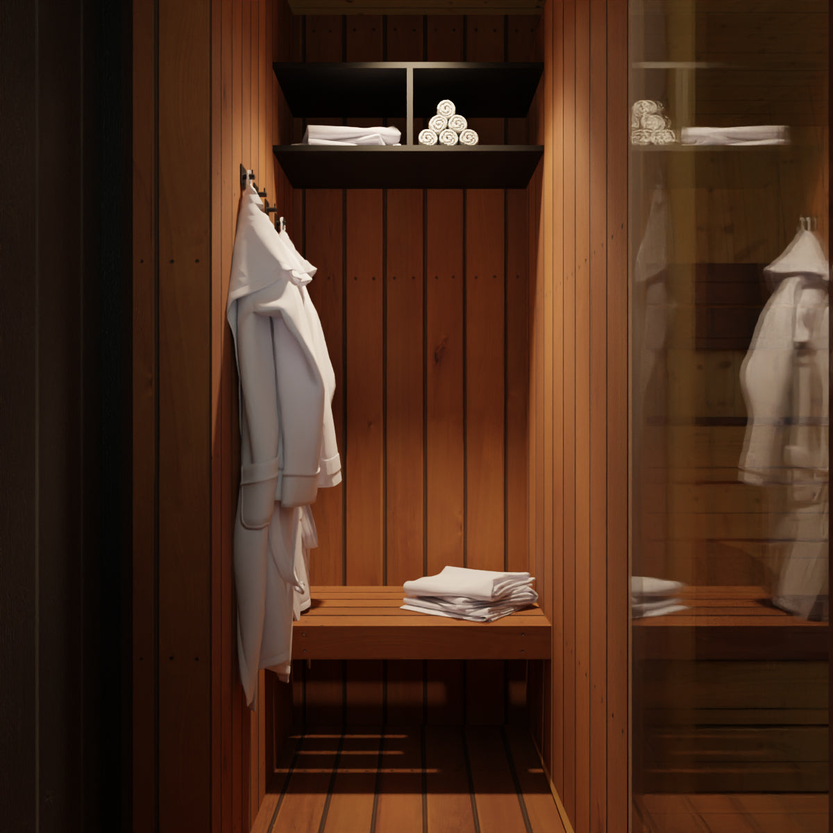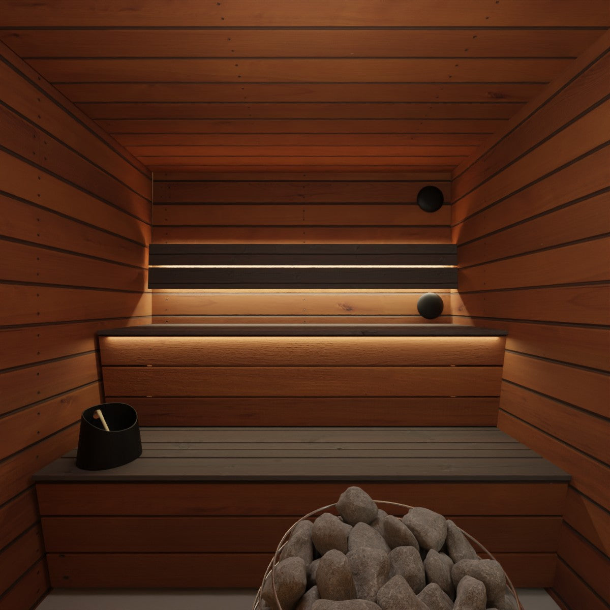 The ventilation void in our designs allows the wood to breathe. In designs with an electric stove, mechanical ventilation is used, thanks to which there is a smaller difference in temperature up and down in the hot part and better air circulation. Breathe freely during a sauna session.